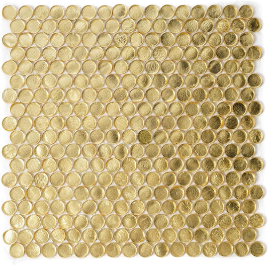 1.03 sq ft/Piece Pack of 1,Glossy Gold Glass Penny Round Mosaic Tiles – 12.2" x 12.2" Mesh-Mounted Sheets, Not Peel & Stick - Kitchen Backsplash, Shower Wall, Bathroom, Fireplace, Interior Decor