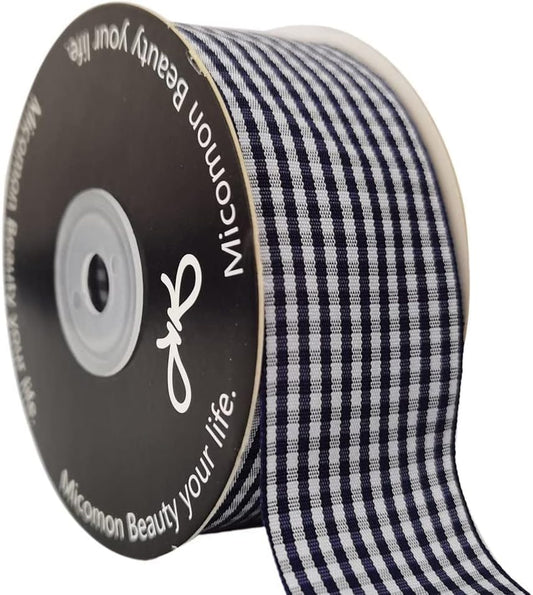 1.5 Inch Black and White Woven Edge Gingham Ribbon 25 Yards Each Roll 100% Polyester (1-1/2", Black)