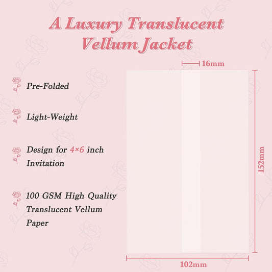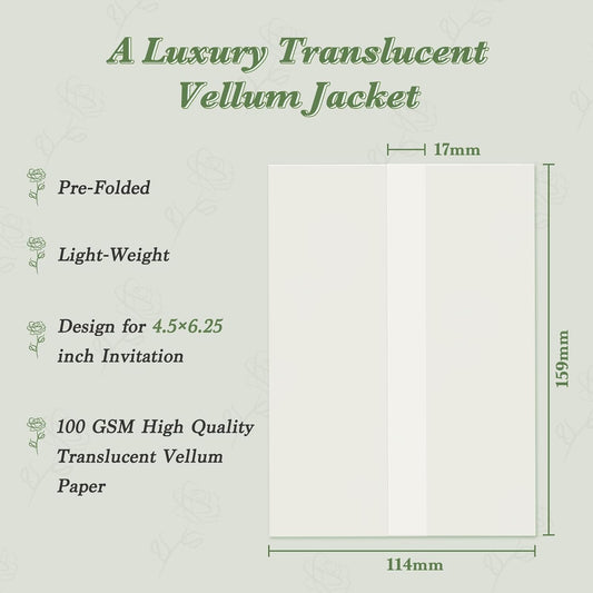 60 Pack Pre-Folded Vellum Jackets for 4.25x5.5 Invitations, Translucent Vellum Paper 4.25x5.5 Jackets, 100GSM Wedding Invitations Wraps, Envelope Liners for Birthdays, Baby Showers