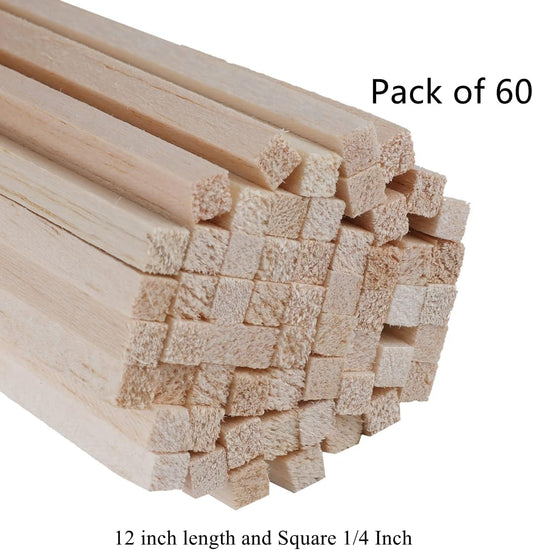 60 Pack Square Wood Dowel Rods 1/4x1/4x12 Inch Balsa Wood Sticks Natural Wood Color Unfinished Wood for Cricut Maker Make Models of House Airplane Ship Boat DIY Wooden(6x6x305mm)