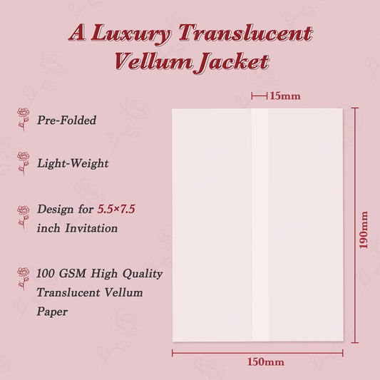 60 Pack Pre-Folded Vellum Jackets for 5.5x7.5 Invitations, Translucent Vellum Paper 5.5x7.5 Jackets, 100GSM Wedding Invitations Wraps, Envelope Liners for Birthdays, Baby Showers