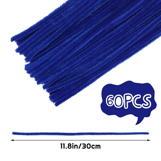 60 PCS Blue Pipe Cleaners,Pipe Cleaners Chenille Stem,Pipe Cleaners Bulk,Art Pipe Cleaners for Creative Home Decoration Supplies and Crafts Project