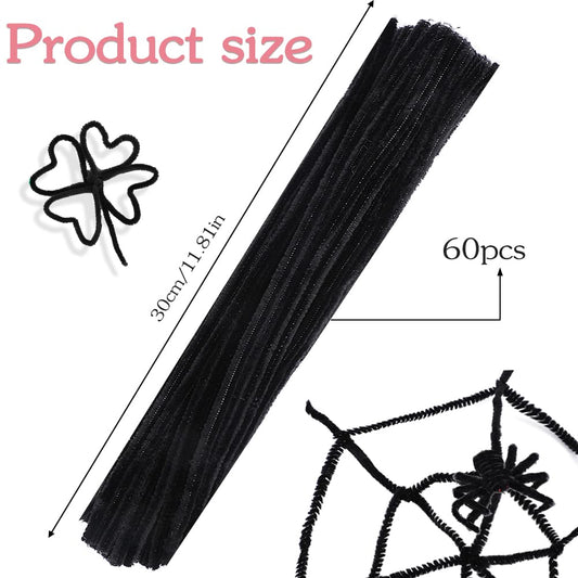 60 PCS Black Pipe Cleaners - Bulk Art & Craft Pipe Cleaners Chenille Stem for Creative Home Decoration and Arts Crafts