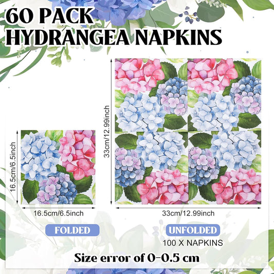 60 Pcs Hydrangea Cocktail Paper Napkins 6.5 x 6.5 Inches Disposable Paper Napkins Dessert Beverage Napkin for Decoupage Luncheon Napkin for Party Wedding Birthday Party