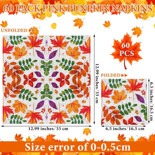 60 Pcs Fall Leaves Cocktail Paper Napkins 6.5 x 6.5 Inches Disposable Paper Napkins Dessert Beverage Napkin for Decoupage Luncheon Napkin for Party Wedding Birthday Party
