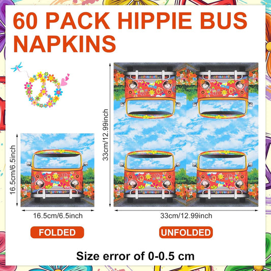 60 Pcs 60's 70's Hippie Party Cocktail Paper Napkins 6.5 x 6.5 Inches Disposable Paper Napkins Dessert Beverage Napkin for Decoupage Luncheon Napkin for Theme Party Wedding Birthday