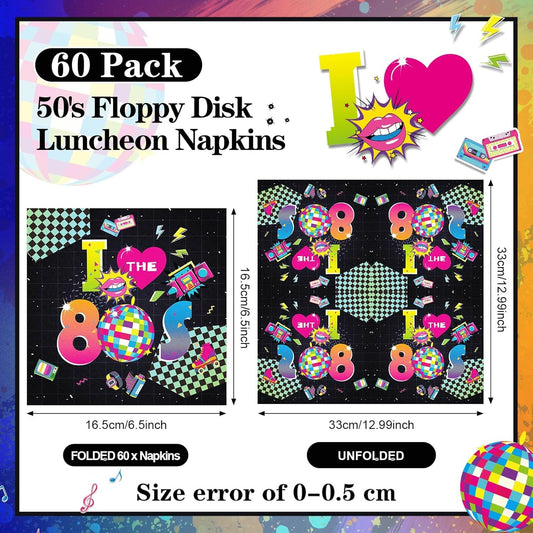 60 Pcs 80s Cocktail Paper Napkins 6.5 x 6.5 Inches Disposable Paper Napkins Dessert Beverage Napkin for Decoupage Luncheon Napkin for Party Wedding Birthday Party