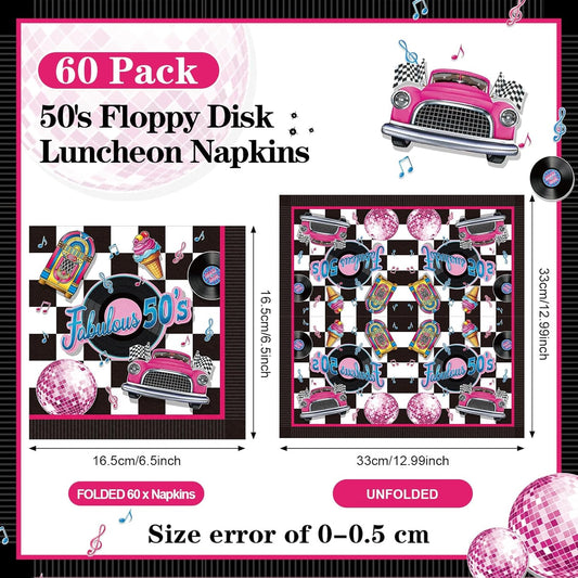 60 Pcs 50s Cocktail Paper Napkins 6.5 x 6.5 Inches Disposable Paper Napkins Dessert Beverage Napkin for Decoupage Luncheon Napkin for Party Wedding Birthday Party