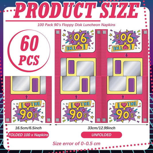 60 Pcs 90s Cocktail Paper Napkins 6.5 x 6.5 Inches Disposable Paper Napkins Dessert Beverage Napkin for Decoupage Luncheon Napkin for Party Wedding Birthday Party