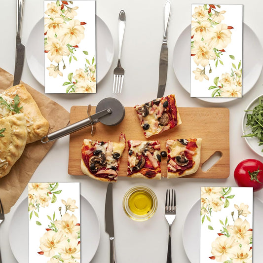 60 Pack 3 Styles Floral White Magnolia Blossom Guest Napkins Disposable Paper Spring Flowers Dinner Hand Napkin for Bathroom Wedding Holiday Anniversary Birthday Party Bridal Decorative Towels