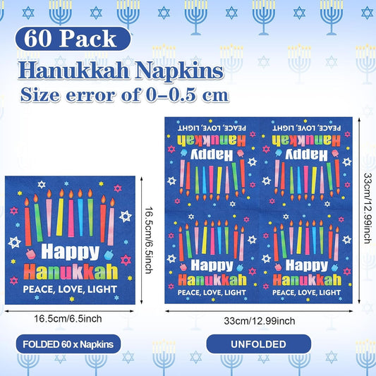 60 Pcs Happy Hanukkah Cocktail Paper Napkins 6.5 x 6.5 Inches Disposable Paper Napkins Dessert Beverage Napkin for Decoupage Luncheon Napkin for Party Wedding Birthday Party