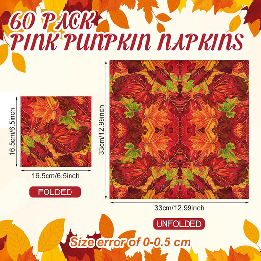 60 Pcs Maple Leaf Cocktail Paper Napkins 6.5 x 6.5 Inches Disposable Paper Napkins Dessert Beverage Napkin for Decoupage Luncheon Napkin for Party Wedding Birthday Party