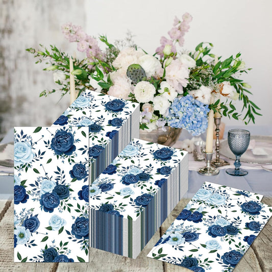 60 Pack 3 Styles Floral Napkins-Blue Party Supplies Vintage Flower Paper Napkins Tea Party Decorations for Birthday,Baby Shower, 12.9 * 15.7 inch