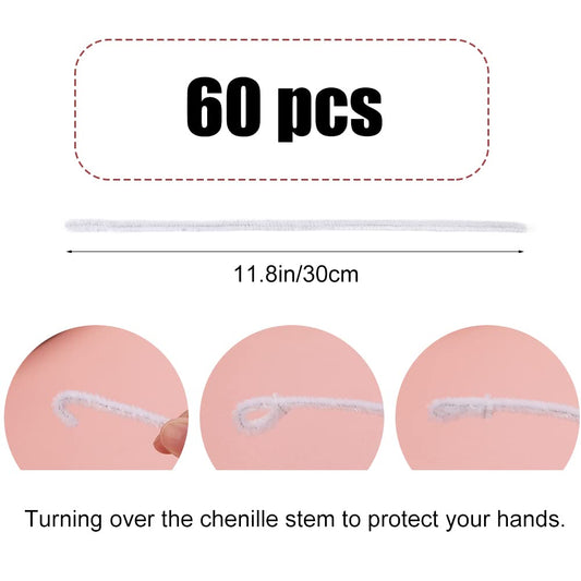 60 PCS White Pipe Cleaners - Bulk Art & Craft Pipe Cleaners Chenille Stem for Creative Home Decoration and Arts Crafts