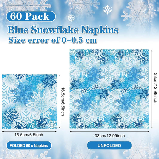 60 Pcs Winter Snowflake Cocktail Paper Napkins 6.5 x 6.5 Inches Disposable Paper Napkins Dessert Beverage Napkin for Decoupage Luncheon Napkin for Party Wedding Birthday Party