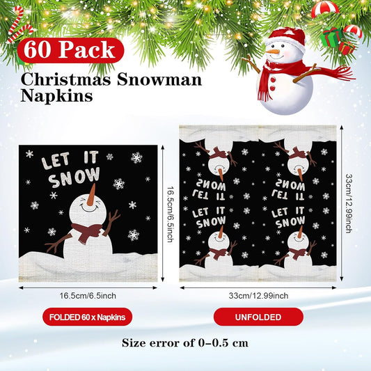 60 Pcs Snowman Cocktail Paper Napkins 6. 5 x 6. 5 Inches Disposable Paper Napkins Dessert Beverage Napkin for Decoupage Luncheon Napkin for Party Wedding Birthday