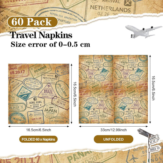 60 Pcs World Travel Cocktail Paper Napkins 6.5 x 6.5 Inches Disposable Paper Napkins Dessert Beverage Tissue for Decoupage Luncheon Tissue for Theme Party Wedding Birthday Party