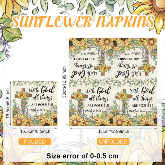 60 Pcs Sunflower Christian Cocktail Paper Napkins 6.5 x 6.5 Inches Disposable Paper Napkins Dessert Beverage Tissue for Decoupage Luncheon Tissue for Theme Party Wedding Birthday Party