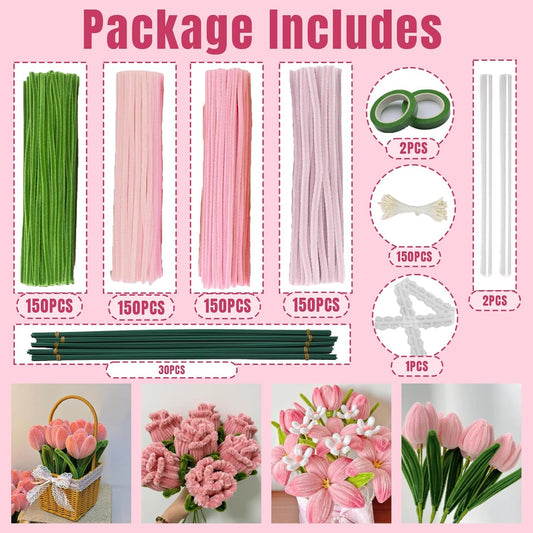 600 Pcs Pink Pipe Cleaners Craft for Flowers,Multiple Assorted Colors Pipe Cleaners Bulk, Chenille Stems for DlY Flower Making Kit.Pink Pipe Cleaners Craft Set(Pink)