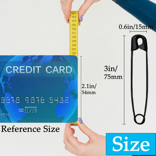 60PCS-3Inch Large Black Safety Pins, Rust-Resistant Nickel Plated Steel, Sharp Edge, Sewing, Arts & Craft
