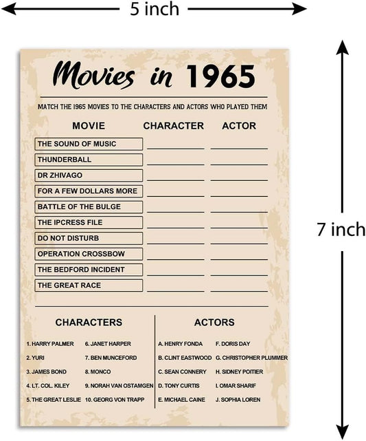 60th Birthday Party Games, Movies in 1965 Games, Birthday Party Supplies for Adults, Fun 1965s Party Game,Pack of 30 Cards