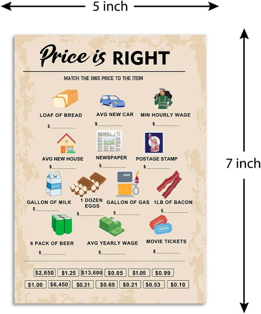 60th Birthday Party Games, Price is Right Games, Birthday Party Supplies for Adults, Fun 1965s Party Game,Pack of 30 Cards