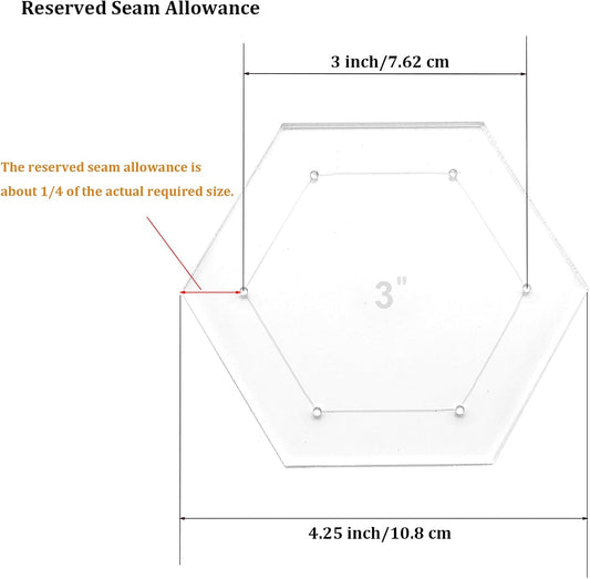 7 Pieces Hexagon Quilting Template with 1/4 Inch Seam Allowance, Hexagon Acrylic Quilting Rulers and Templates for Sewing DIY Manual Crafts Including 1 Inch*2, 1.5 Inch*2, 2 Inch, 3 Inch, 5 Inch