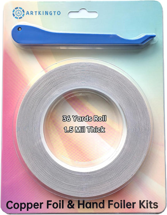 1/4 Inch Silver Backed Copper Foil for Stained Glass, 1.5 Mil Thick, 36 Yards 2 Rolls, with Copper Foil Hand Foiler
