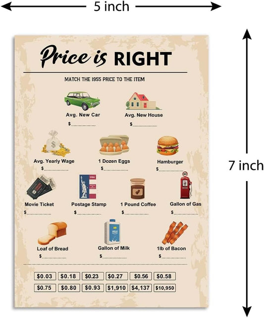 70th Birthday Party Games, Price is Right Games, Birthday Party Supplies for Adults, Fun 1955s Party Game,Pack of 30 Cards