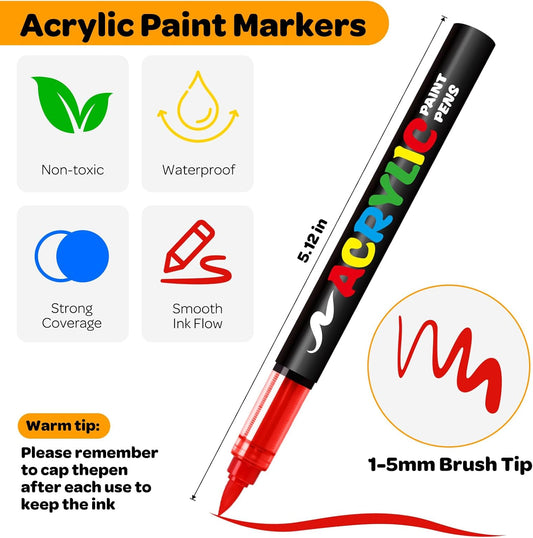 72 Colors Acrylic Paint Markers, Soft Brush Tip Acrylic Markers Set, Paint Pens for Wood, Fabric, Canvas, Glass, Stone, Canvas, Rock Painting and DIY Crafts Art Supplies