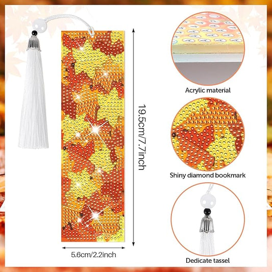 8 Pieces Fall Diamond Art Bookmarks 5d Maple Leaves Bookmark Acrylic Tassel Bookmark for DIY Making Beginners Kids Adults Arts Craft Supplies (Fall)