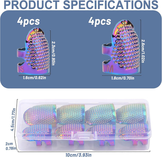8 Pcs Sewing Thimbles, Sewing Thimble Finger Protector, Fingertip Thimble Metal Dazzle Color Adjustable Metal Sewing Thimble Rings, Sewing Quilting Craft Accessories DIY Sewing Tools (2 Sizes, S/M)