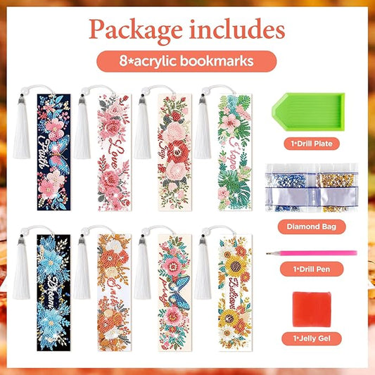 8 Pieces Diamond Art Bookmarks Inspirational DIY Farmhouse Rustic Bookmark Acrylic Tassel Bookmark for DIY Making Beginners Adults Arts Craft Supplies