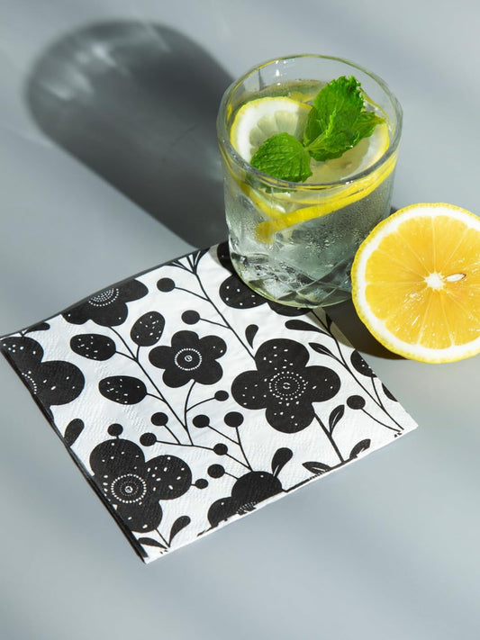 80 pack Designer Cocktail Beverage Napkins, 3-Ply 5x5-inches Disposable Decorative Fall Winter Guest Floral Black White Flower Napkin for Wedding Birthday Anniversary Party Baby Shower