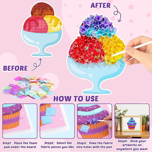 8PCS Poke-in Craft and Art Kit Dessert Cake Theme No-Mess Fabric Sewing Art Puzzle Puncture Painting Ice Cream Donut Toy Gift for Creative Activity Game Birthday Party