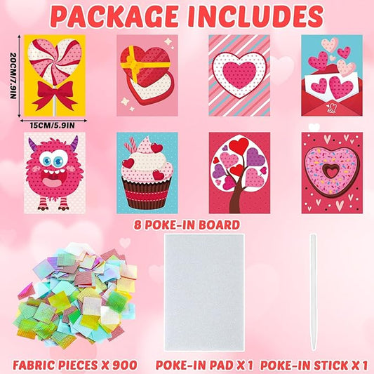 8PCS Poke-in Craft and Art Kit Heart Monster Dessert No-Mess Fabric Sewing Art Puzzle Puncture Painting Toy Gift Mom Valentine Creative Activity Game Birthday Party