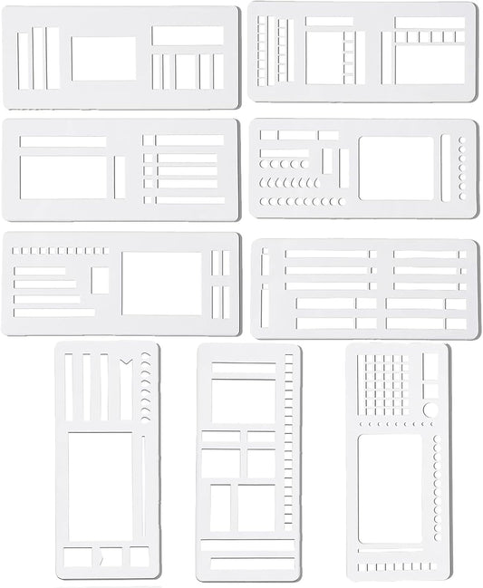 9 Pack Handmade Flexible Planner Stencils, Reusable Templates for Journals, Calendars & Daily Planning, Checklists, Lines & Boxes, Compatible with Rings, Discs, Coils