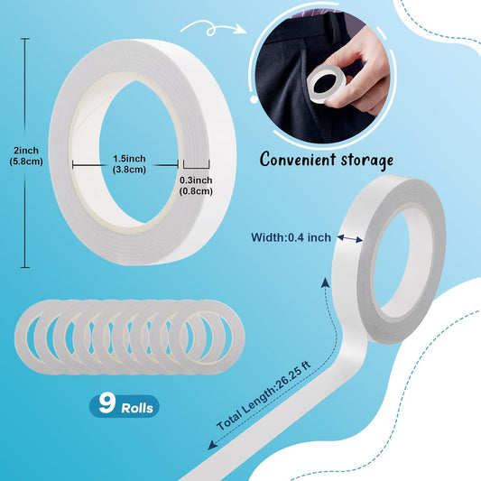 9 Rolls Double Sided Tape for Crafts, Strong Double-Sided Tape, Scrapbook Tape, Double-Sided Adhesive Tape for Arts, Card Making, Scrapbooking Supplies, Gift Wrapping (0.4 in X 26.25Ft)