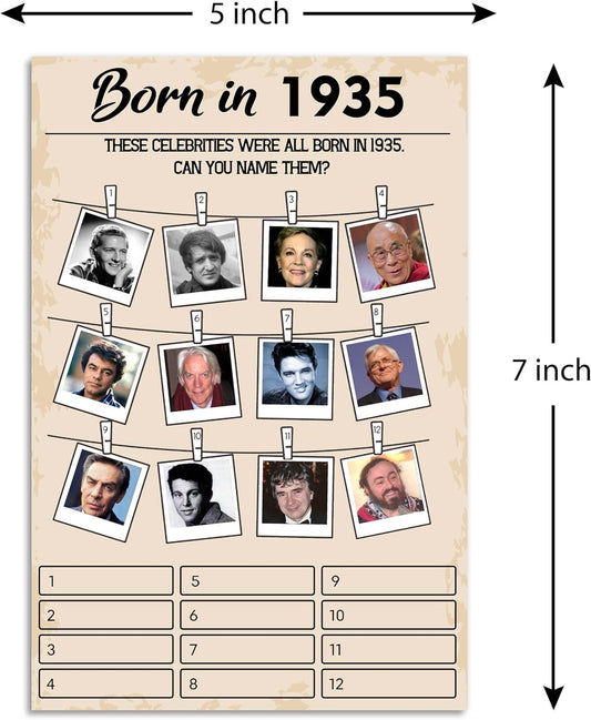 90 th Birthday Party Games, Set of 2 Activities for 15 Guests, Born in 1935 Games Bundle, Birthday Party Supplies for Adults, Pack of 30 Cards