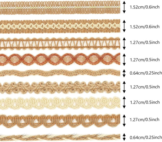 9 Rolls Natural Burlap Lace Ribbon Trim,18 Meters Jute Craft Ribbon for DIY Sewing,Rustic Wedding Decorations,Gift Wrapping&Party Supplies