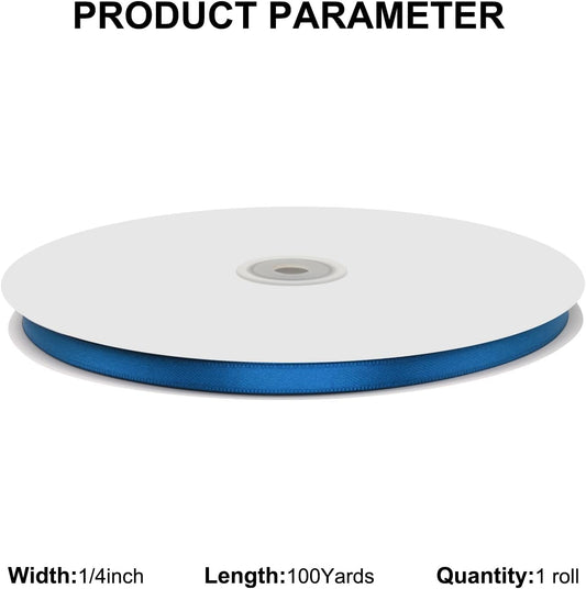1/4" X 100 Yards Royal Blue Satin Thin Ribbon Solid Color Double Faced Ribbons Perfect for Crafts Wedding Decor Bow Making Arts Sewing and More