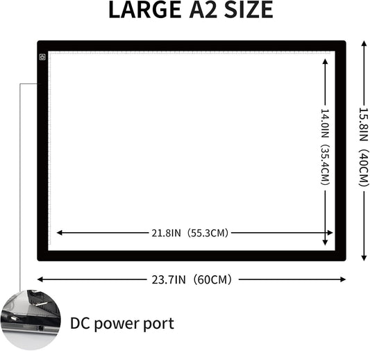 A2 Light Pad Super Thin 7mm Portable Stepless Dimmable Brightness Large Light Box Copy Board for Diamond Painting Weeding Vinyl with 2 Multi-Functional Clips 12V 2A Adapter (23.7''x15.8'')