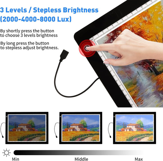 A4 Light Box for tracing,Ultra-Thin Magnetic led Light pad for Drawing,Stepless dimming lightbox for Sketching,Tattoo, Light Table for Artists,Diamond Painting,X-ray Viewing
