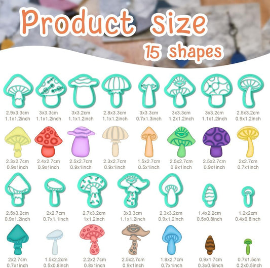 ACRNIGHEET Mushroom Clay Cutters - 15pcs 3D Clay Cutters for Polymer Clay, Clay Cutters Shapes Mushroom, Cookie Cutter, DIY Earring Making Tools with Storage Box