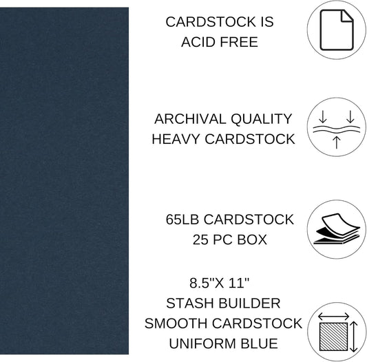 Accent Design Paper Accents Stash Builder Cardstock 8.5" x 11" Uniform Blue, 65lb Colored cardstock Paper for Card Making, Scrapbooking, Printing, Quilling and Crafts, 25 Piece Pack