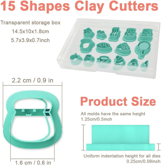 ACRNIGHEET Polymer Clay Cutters - 15 Shapes Food Breakfast Bread Theme Polymer Clay Cutters for Jewelry, Cute Earring Making Kit with Storage Box