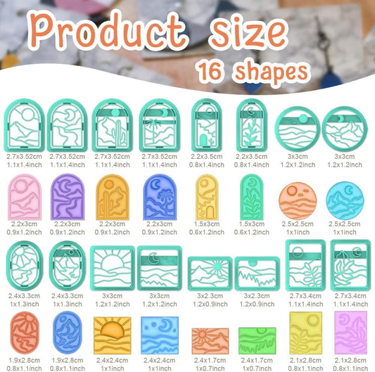 ACRNIGHEET Boho Clay Cutters - 16 Shapes Sun and Moon, Landscape Polymer Clay Cutters for Jewelry, Earring Making Kit With Storage Box