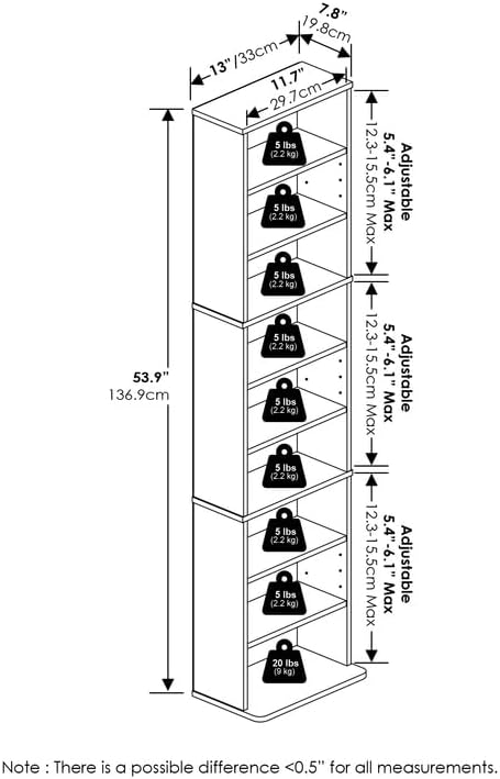 Adjustable Shelves Multimedia Storage Tower Rack with Spacious Media Organization, Durable Design, Versatile Rack for DVDs, CDs, Games, and More Espresso/6 Tier