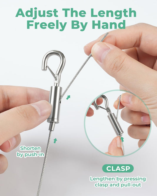 Adjustable Picture Hanging Wire, 2PCS 1m x 1mm Small Hooks + 2PCS 2m x 1.5mm Large Hooks Picture Frame Wire Kit Heavy Duty up to 100lbs, Stainless Steel for Mirror, Light, Flowerpot