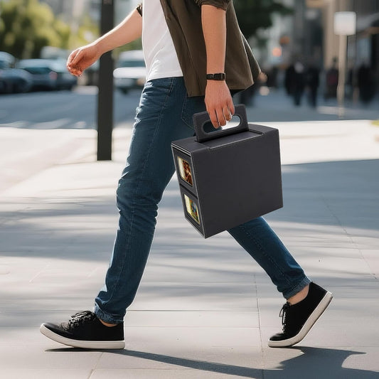 AFIING Commander Deck Box for MTG/EDH, Fits 400+ Double-Sleeved Cards, with Display Window, 4 Removable Deck Cases, Dividers, Dice Tray & Handle, Card Holders for TCG (Black Grey)